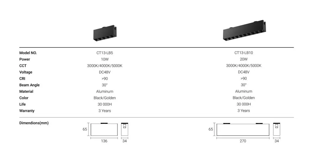 | On-Track / Surface 100W | DC48V | 2.1A | 34*60*200mm / 60*35*240mm |